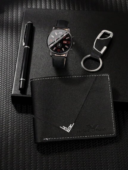 (هدية رجالي (ساعة جلد- قلم -سلسلة مفاتيح- محفظة