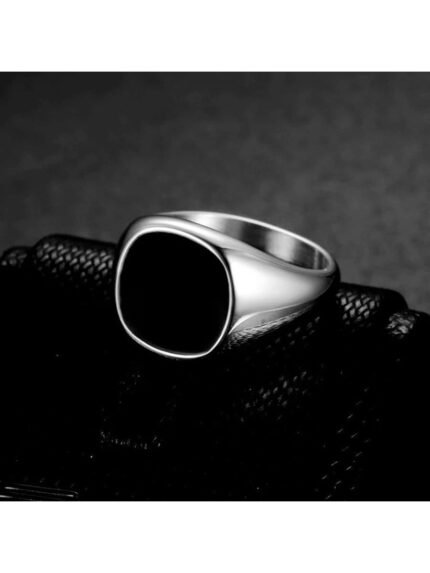 خاتم كلاسيكي بسيط من العقيق الأسود