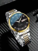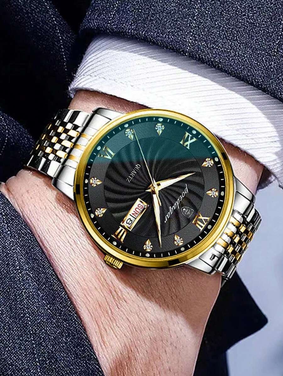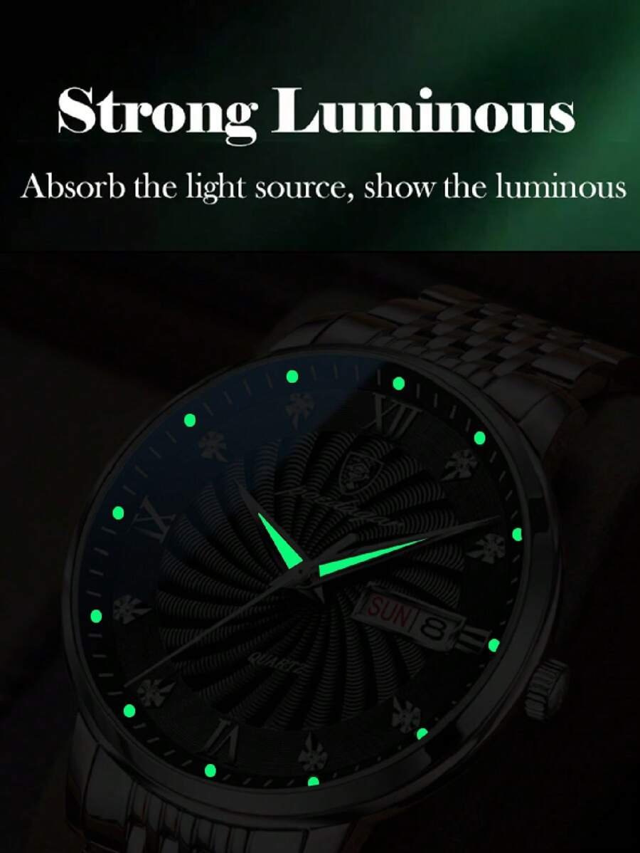 استمتع بأناقة تتجاوز الزمن مع الساعة الرجالية المتميزة المصنوعة من الفولاذ المقاوم للصدأ. تجمع هذه الساعة بين التصميم العصري والوظائف المتطورة، مما يجعلها الخيار المثالي للرجل العصري. مع عناصر توهج في الظلام، يتمكن مرتديها من قراءة الوقت بسهولة في الظلام، إضافةً إلى ميزة التاريخ التي تسهل عليك متابعة الأيام.