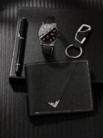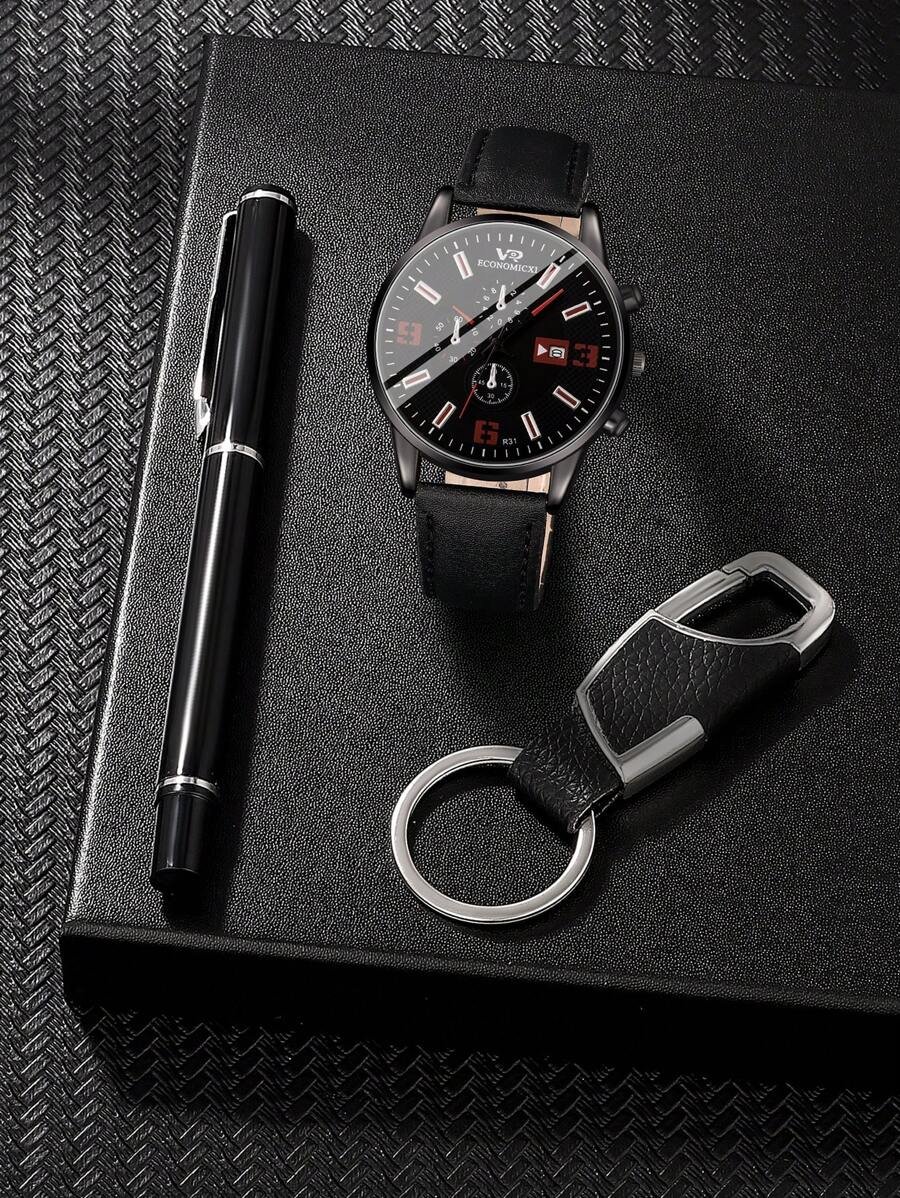 هل تبحث عن هدية مميزة تجمع بين الأناقة والوظائف المتعددة؟ نقدم لك مجموعة فريدة تتكون من ساعة جلدية أنيقة، قلم فاخر، سلسلة مفاتيح جذابة، ومحفظة عملية، لتكون الخيار المثالي لكل رجل يتطلع للتميز.