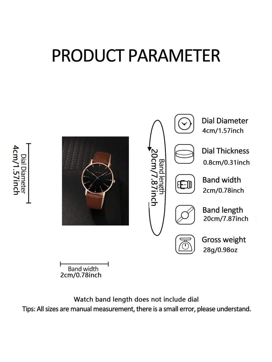 - ساعة كوارتز دقيقة: تتمتع بمؤشر عرض واضح وشكل دائري جاذب، تمنحك الوقت بدقة وأناقة.