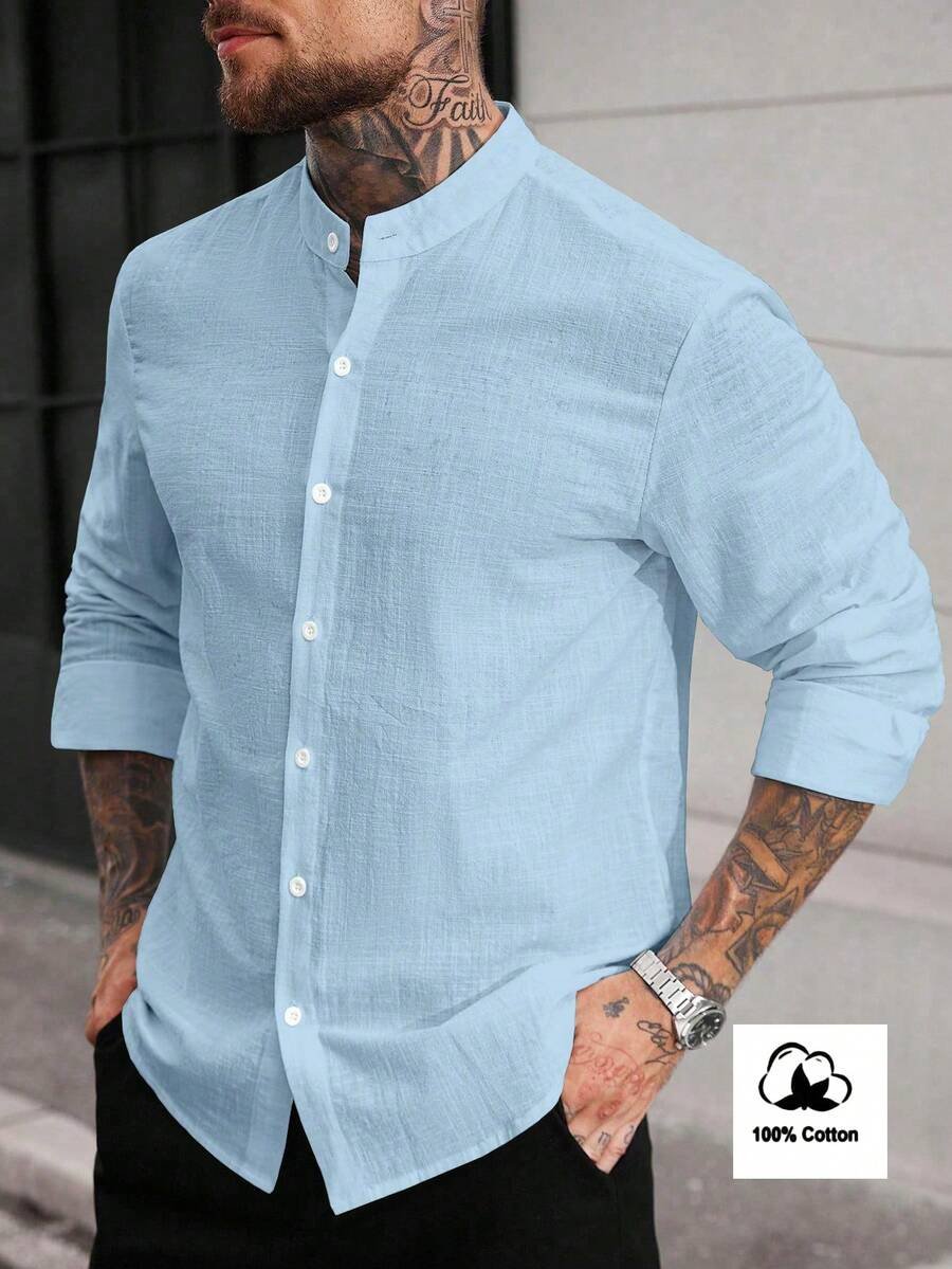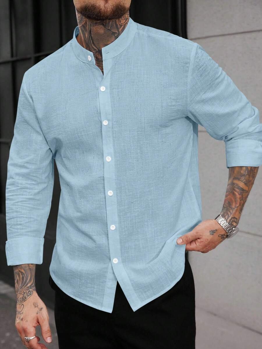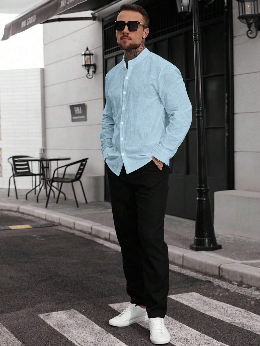 قميص رجالي أكمام طويلة أزرق فاتح