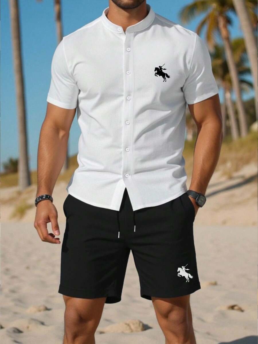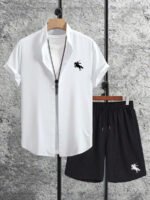 اكتشف أناقة الراحة مع هذا السيت الرجالي الكاجوال الذي يجمع بين القميص الأنيق والشورت العملي. تم تصميم القميص بأكمام عادية بتفاصيل رائعة تشمل طوق القميص وسجاف مزود بأزرار أمامية، مما يجعله اختيارًا مثاليًا للمناسبات غير الرسمية.